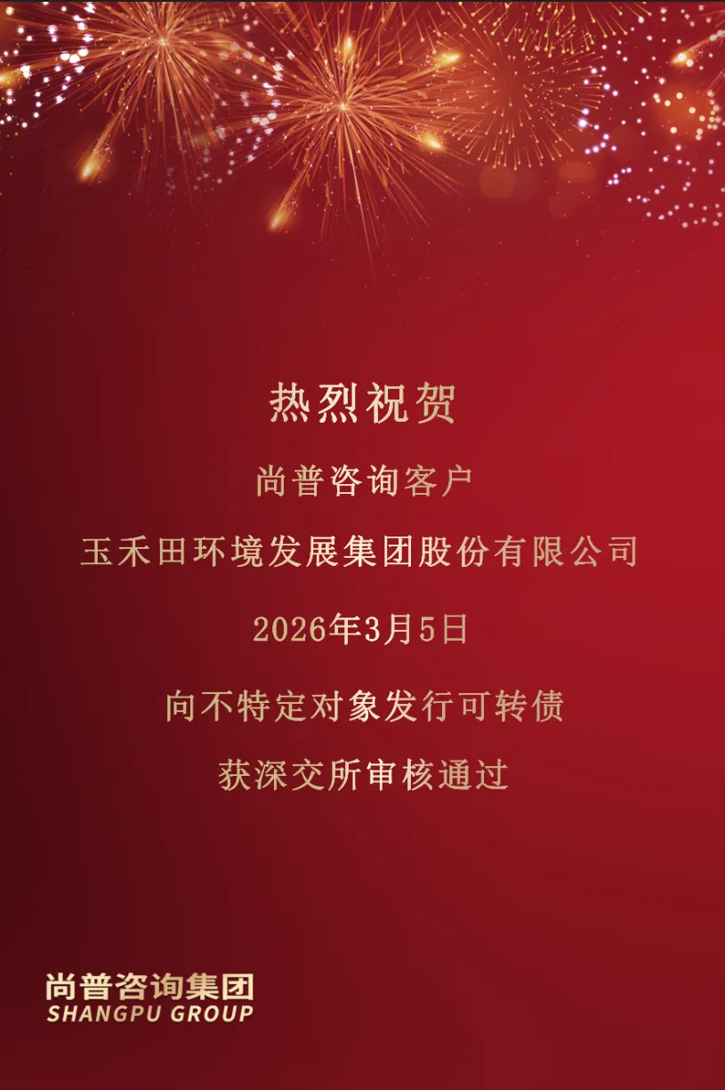 2026年3月5日,尚普咨询客户——玉禾田环境发展集团股份有限公司(证券简称:玉禾田,证券代码:300815)向不特定对象发行可转债通过深交所审核。